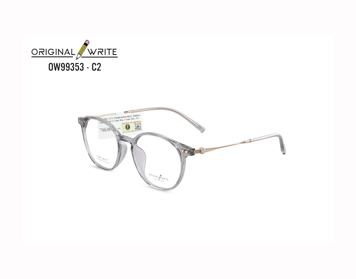 Gọng kính ORIGINAL WRITE là dòng sản phẩm chính hãng, được sản xuất theo tiêu chuẩn chất lượng cao, đảm bảo độ bền, tính thẩm mỹ và sự thoải mái khi sử dụng. Sản phẩm được thiết kế đa dạng từ phong cách cổ điển đến hiện đại, phù hợp với nhiều đối tượng như học sinh, sinh viên, nhân viên văn phòng hay doanh nhân.